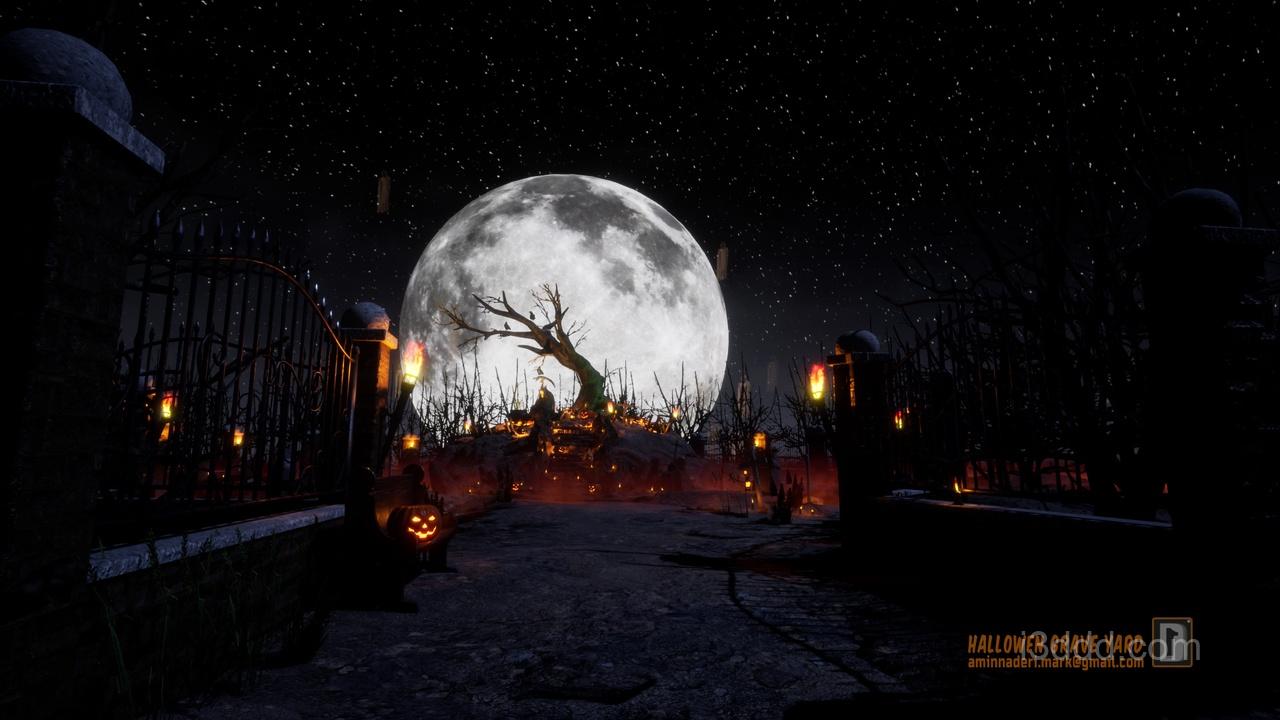 万圣节墓地南瓜灯笼月亮圆月场景 Halloween Graveyard 4.26-5.6
