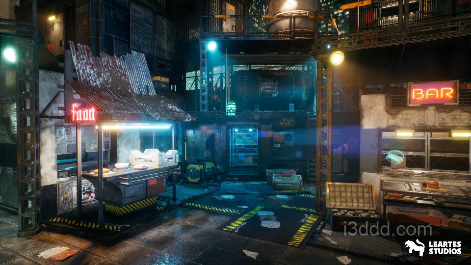 赛博朋克屋顶集市场景 Cyberpunk Rooftop Market Environment