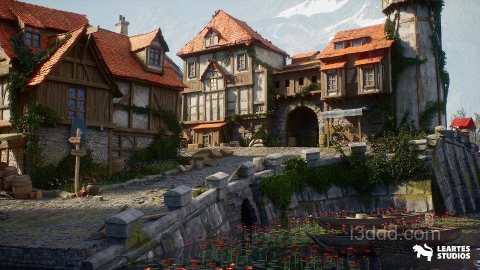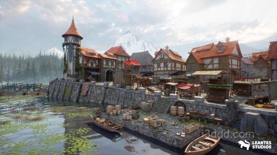 中世纪湖畔小镇场景 Medieval Lake Town Environment