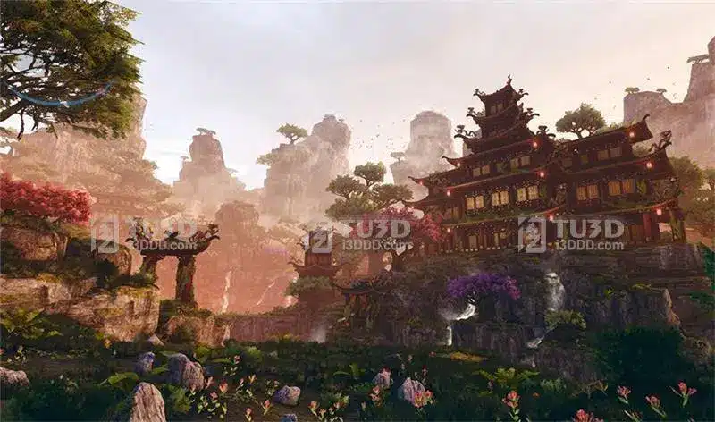 Blender古风河流仙境影视场景模型
