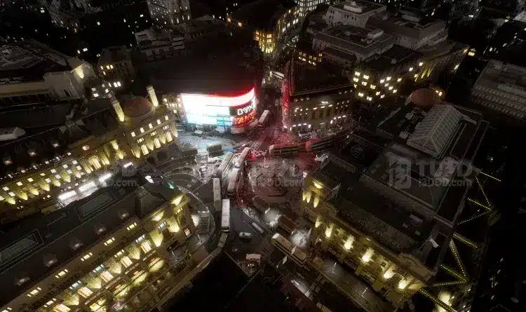Blender 雨夜伦敦皮卡迪利广场繁华都市场景模型