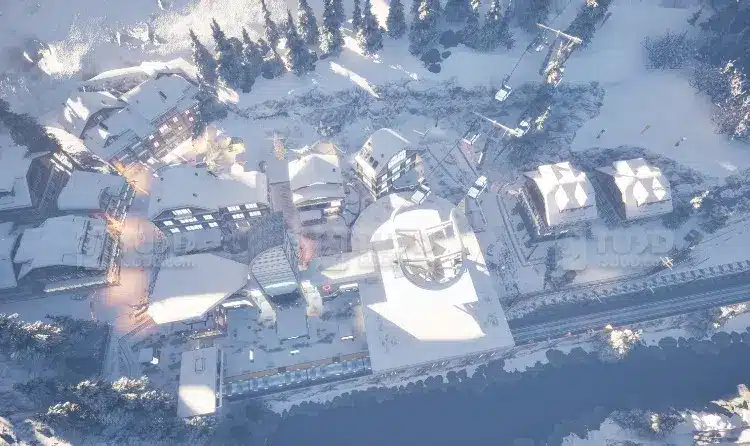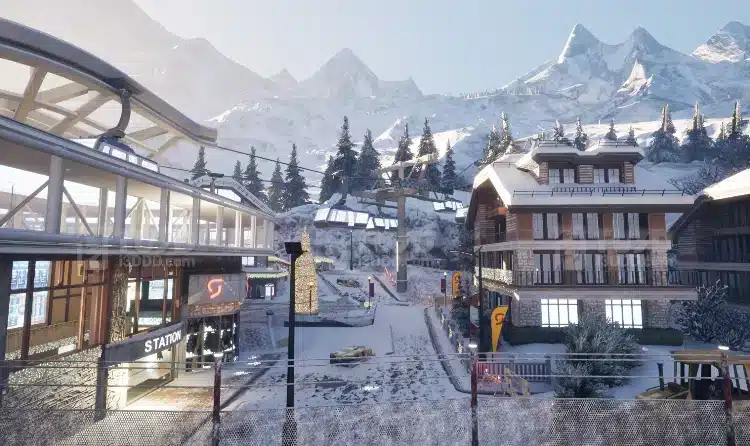 Blender 雪山度假小镇场景模型圣诞风格滑雪缆车站