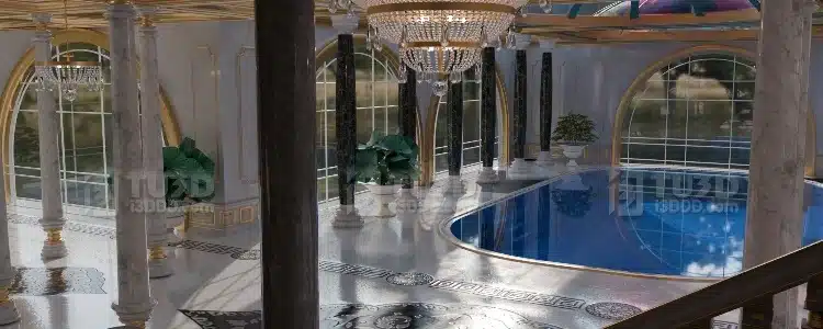 Blender 欧式宫廷风双楼梯大理石镜面奢华大厅