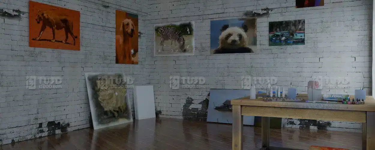 Blender 复古工业风艺术画室场景模型