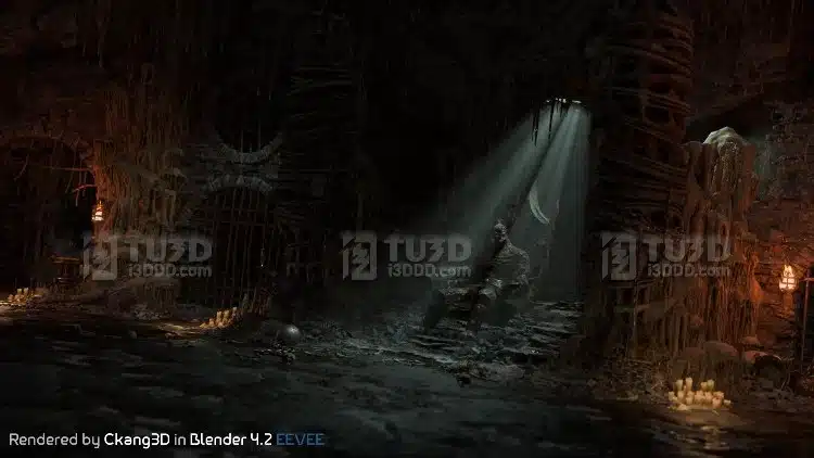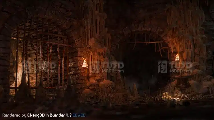 Blender 暗黑风格溶洞地牢场景模型