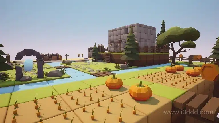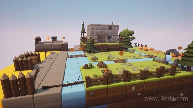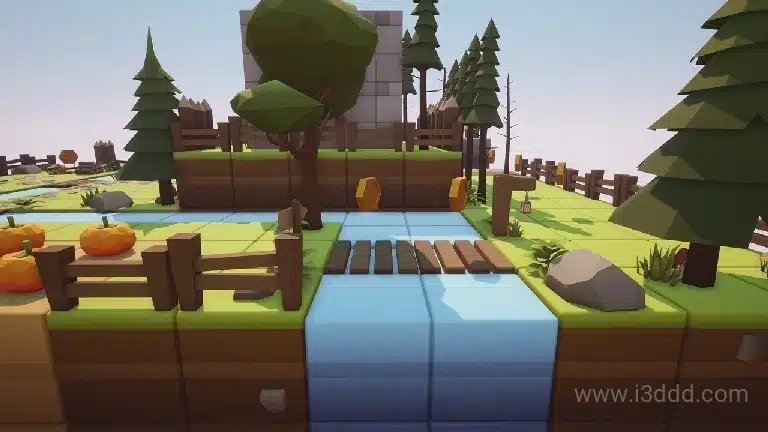 卡通低多边形 3D 立方体世界 Cartoon Low Poly 3D Cube World