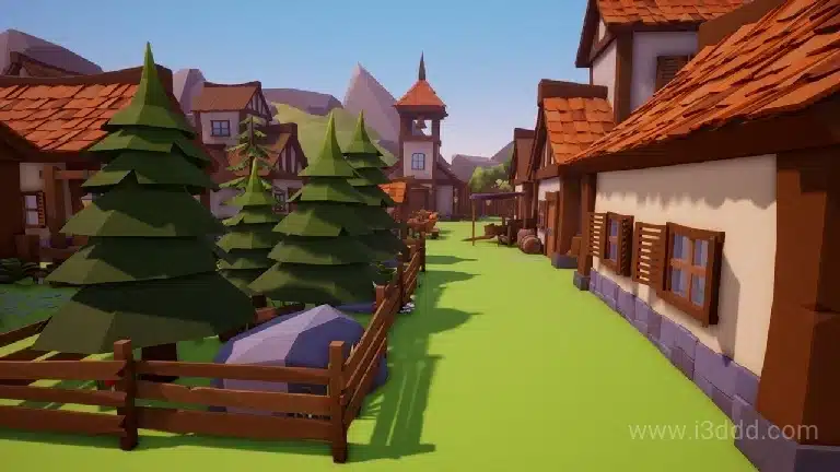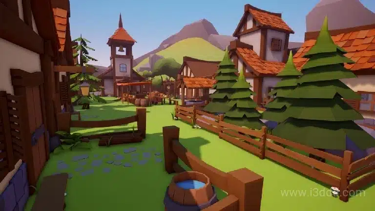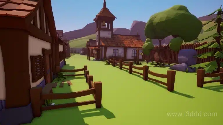 卡通多边形乡村村子场景 Low Poly Village