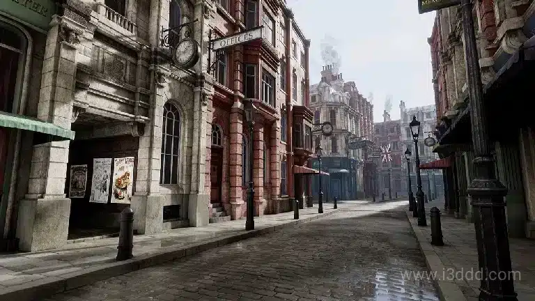 维多利亚街道高楼欧洲哥特式建筑场景 – Victorian Street