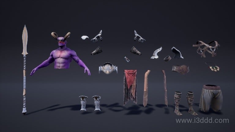 牛角恶魔战士人物脸部动画长矛模型 – Fantasy Hero