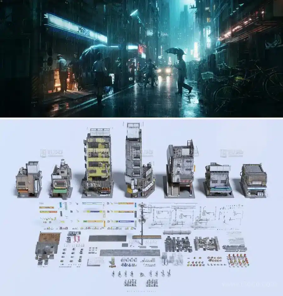 该资源包含 450 + 个项目,具体有 4 个完全装配的 CROWD 角色(提供 70 个预设姿势和颜色变化)、7 个高度详细的英雄建筑组件、昼夜设置、10 个背景建筑、300 + 套着装元素、4 个含 12 个姿势的自行车设计、15 个不同配色方案的角色道具,同时配备 Blender 资源浏览器和 GeoNode 设置,还包含出租车和汽车模型、UE 演示场景、雨蓝图以及 UE 控制装备,支持格式为 Blend 3.6+、OBJ、FBX、UE5。