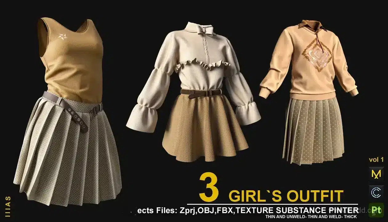 女孩百褶裙套装衬衫背心 - Girl's Pleated Skirt Set