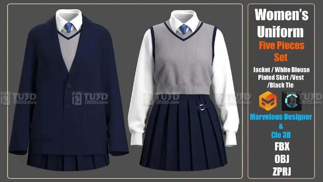 女士百褶裙西装校服套装 – Ladies Pleated Skirt Suit School Uniform Set