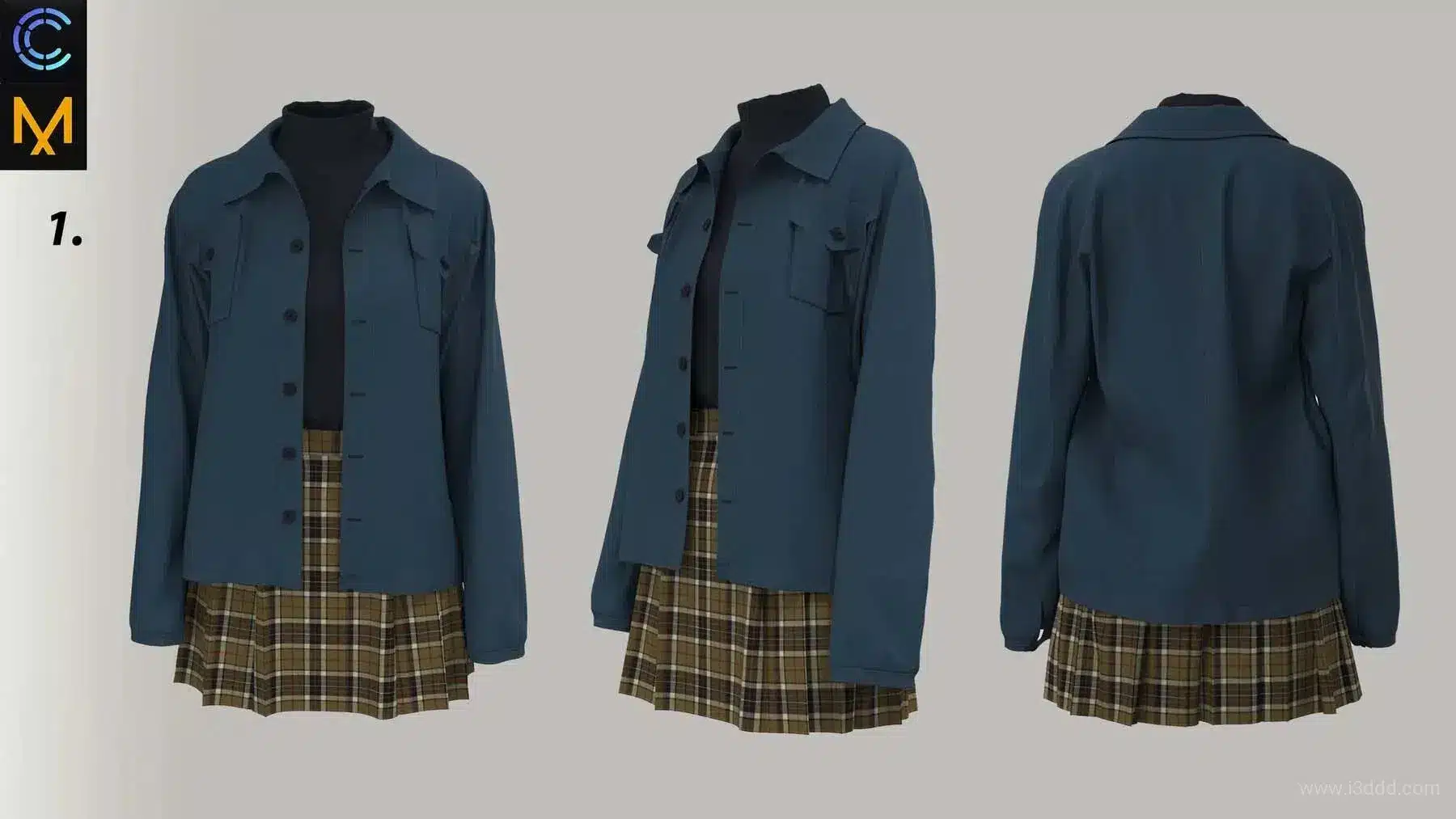 女性长袖衬衫短裙日常服装 – Women’s Long-sleeve Shirt & Skirt