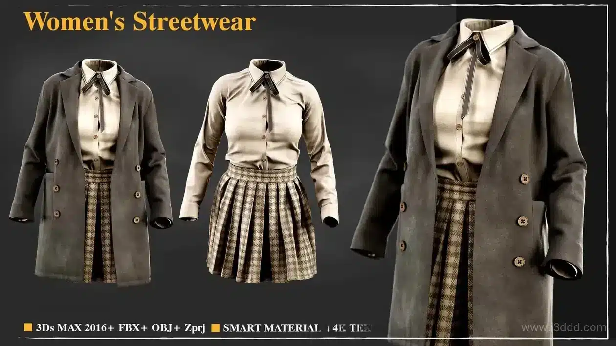 女装风衣衬衫百褶裙大衣街头服饰 – Women’s Trench Coat Shirt Pleated Skirt Streetwear