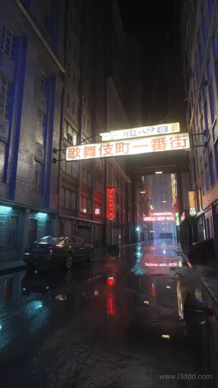 C4D 赛博朋克末日城市 湿漉地面街道霓虹灯场景工程
