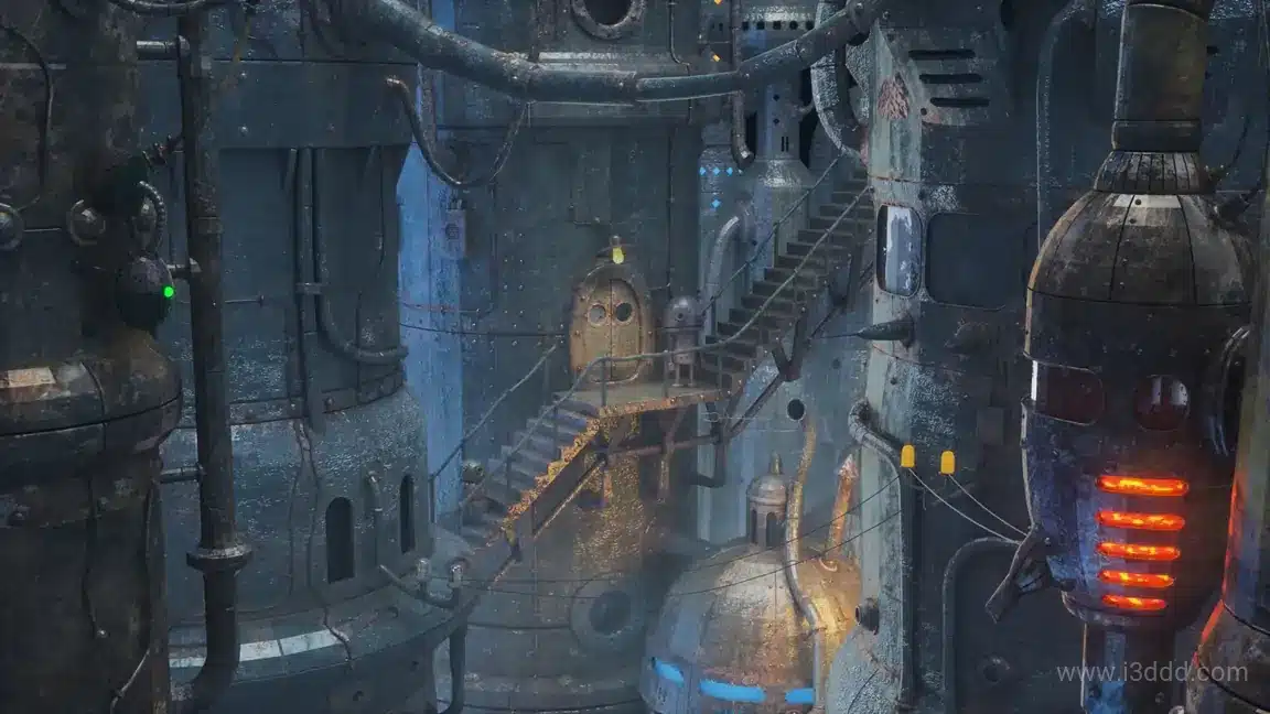 C4D 卡通科幻机械风格 赛博朋克城市机器人场景工程
