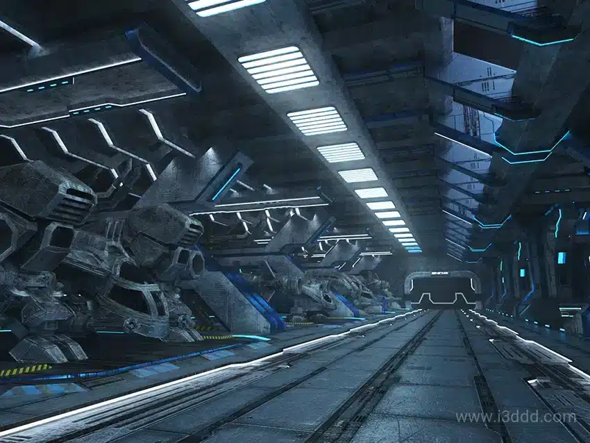 C4D 未来科幻写实场景 宇宙飞船空间机库 Octane 渲染工程