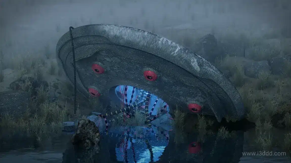 C4D 坠毁 UFO 场景模型工程